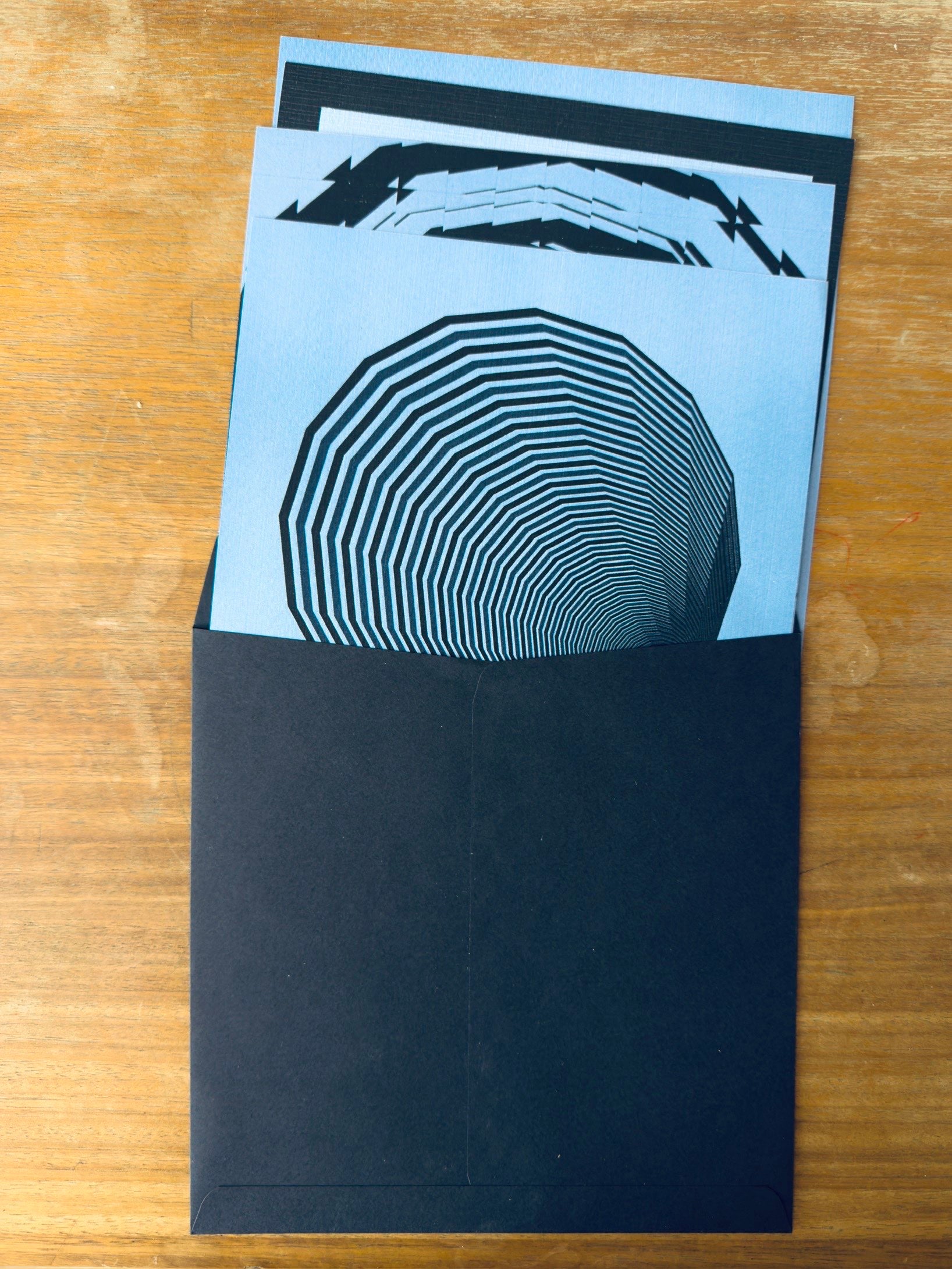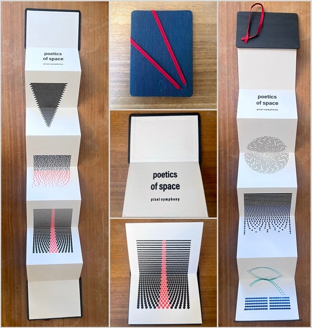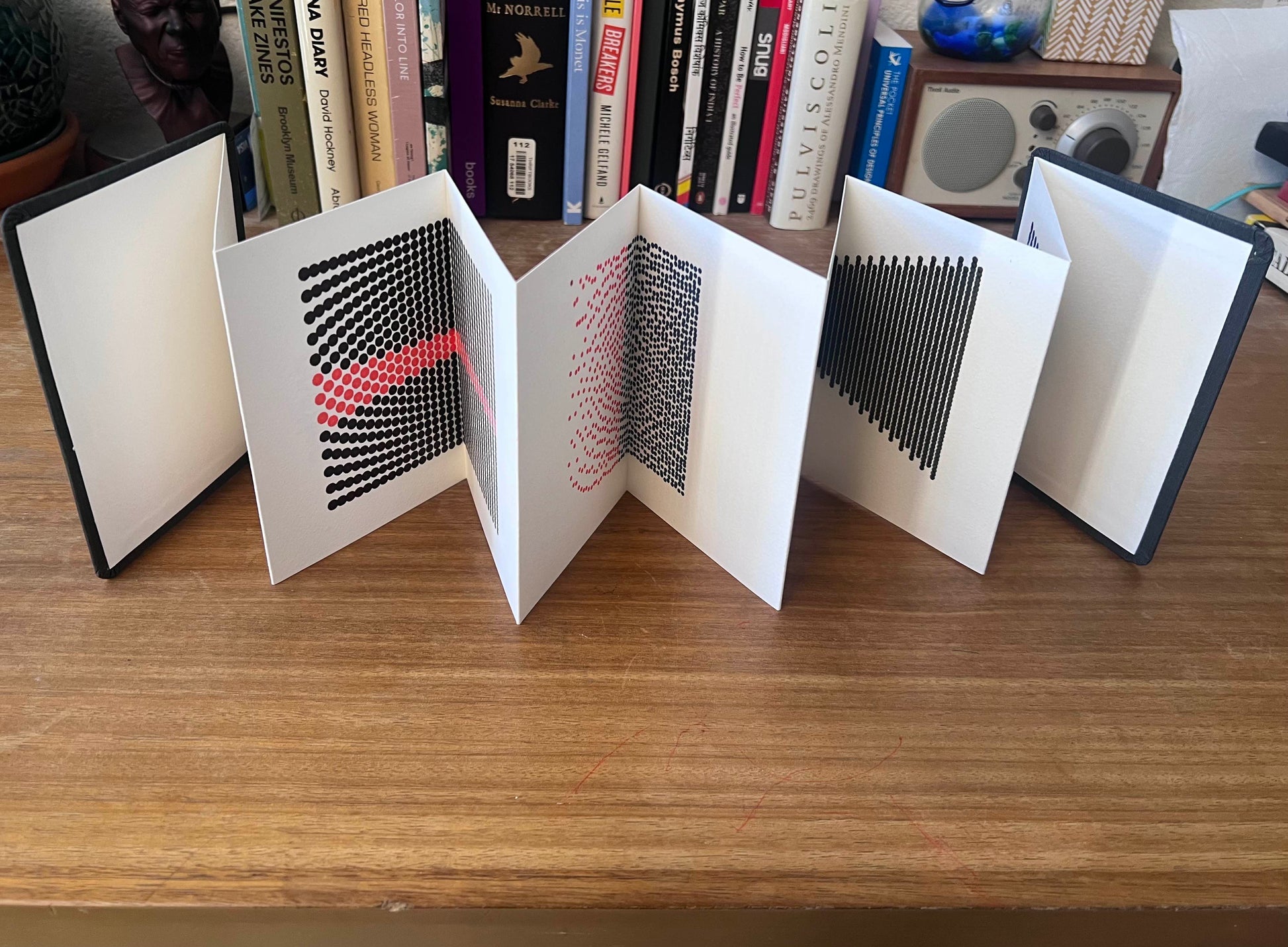 Folded accordion book: A notebook featuring 6 unique plots from the series, presented in folded accordion pages. This limited edition of 10 works is signed, numbered. Hahnemühle Sketchbook paper, 300gsm, using archival ink.